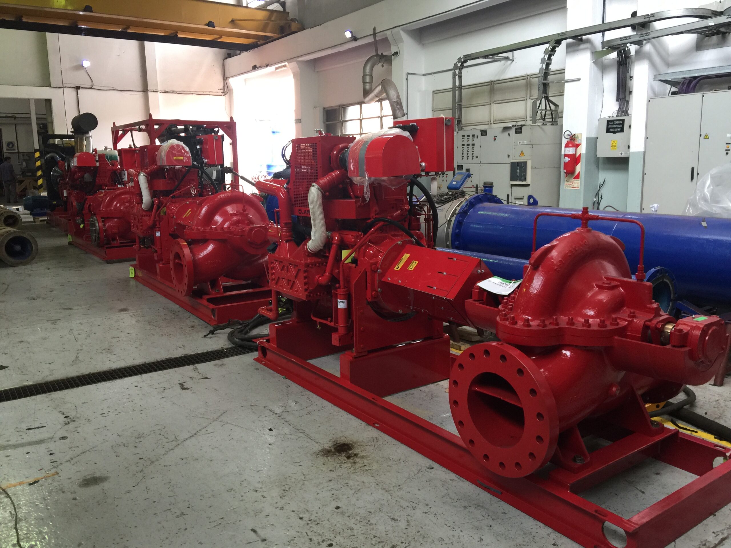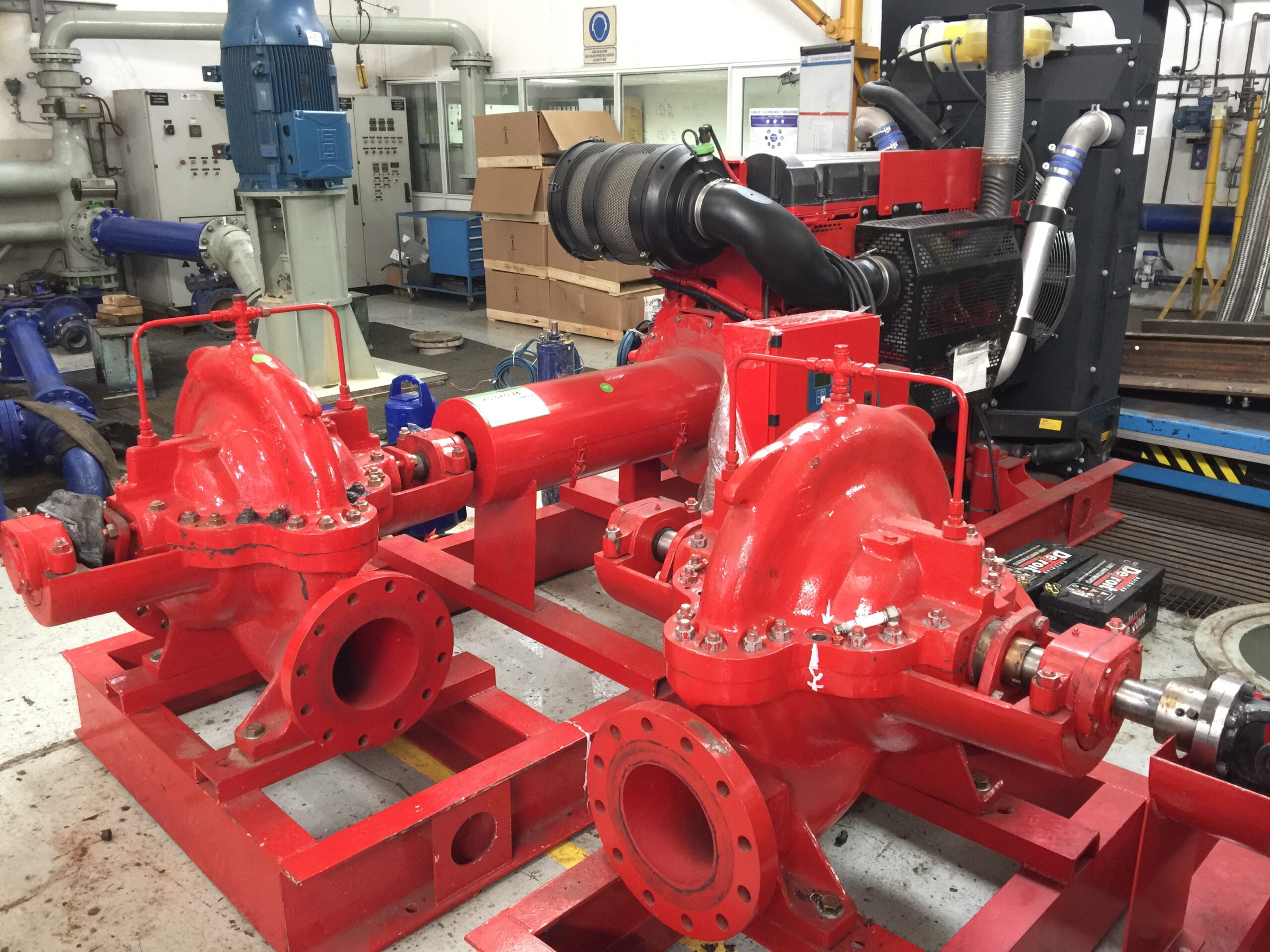 Bombas y sistemas de presurización certificados para protección en plantas industriales y edificios.